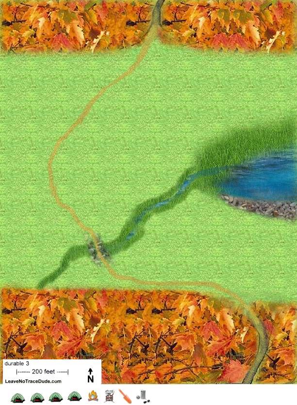 - How might the campsites be different if you choose to set up on the north or south sides of the meadow? (shade on the south side)